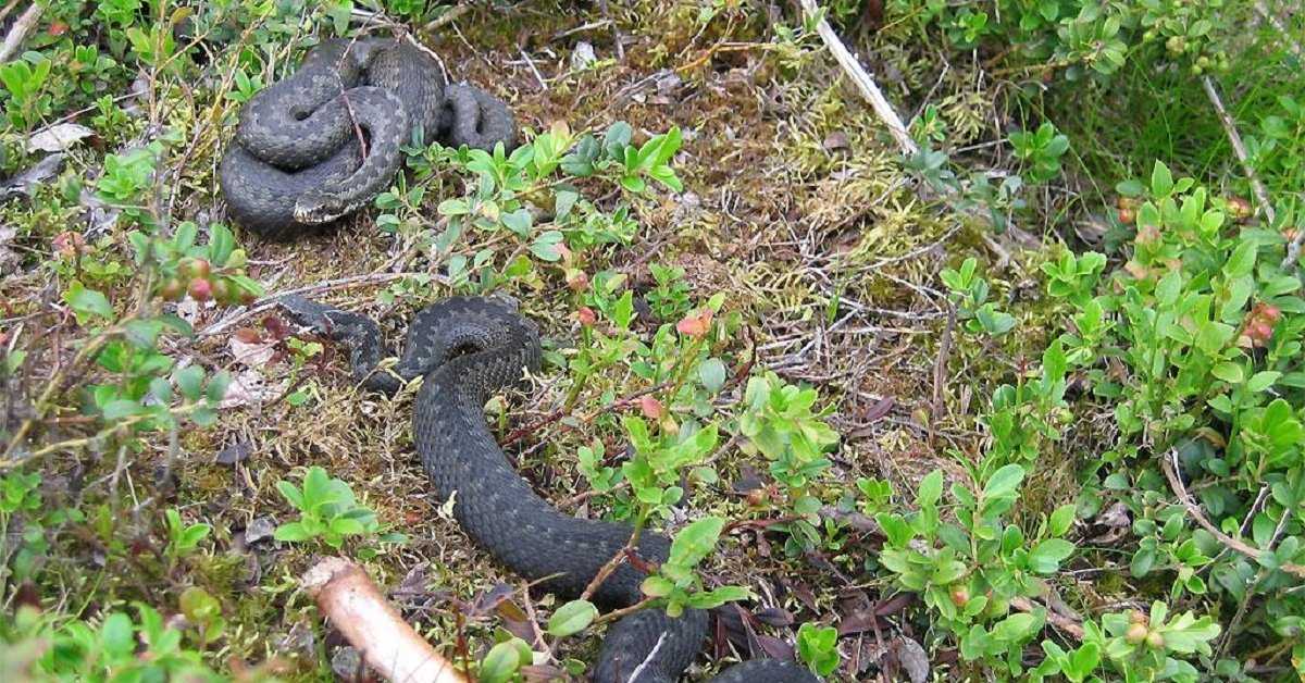 Гадюки – смертельно опасные гады. Они черного цвета, на спине серый узор. От таких змей лучше избавляться радикальным способом.