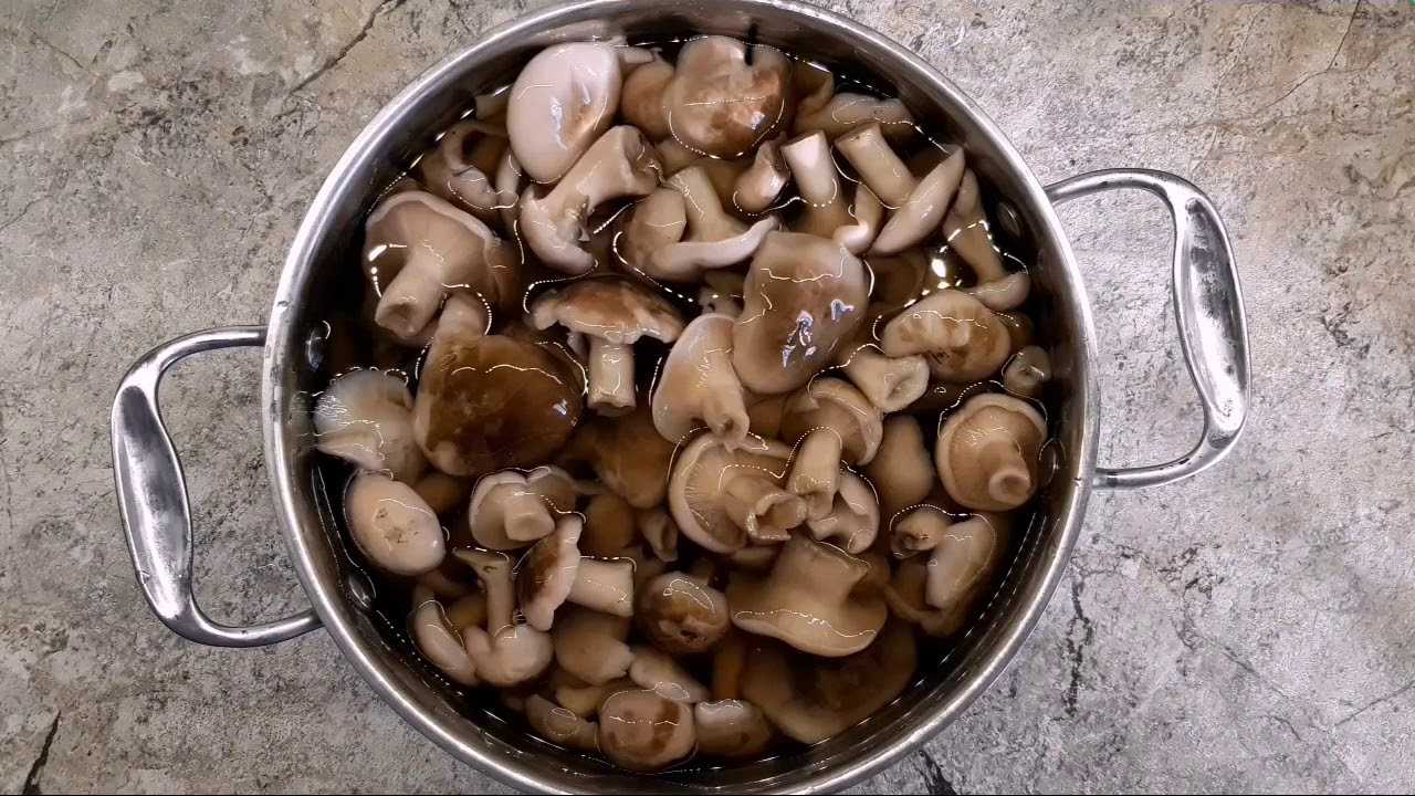 Далее, их необходимо отварить в подсоленной воде не менее 20 минут. Отвар слить, а грибы промыть под струёй холодной воды.