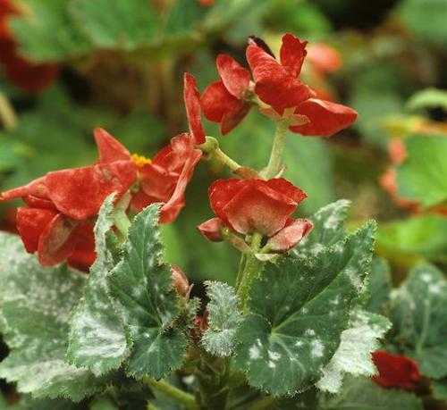 Довольно часто листья и черешки бегонии подвергаются грибковым заболеваниям, наиболее часто – мучнистой росе. В большинстве своем она вызвана переизбытком влаги. Внимательно следите за состоянием сердцевины куста, а также нижних листьев, чтобы вовремя рассмотреть проблему. Именно эти места являются местом появления гнили и мучнистой росы. Если все-таки вы диагностировали данную проблему на своем растении, вам нужно избавиться от поврежденных листов, а после сократить полив. Таким образом у вас получится избежать размножения грибка по всему растению.