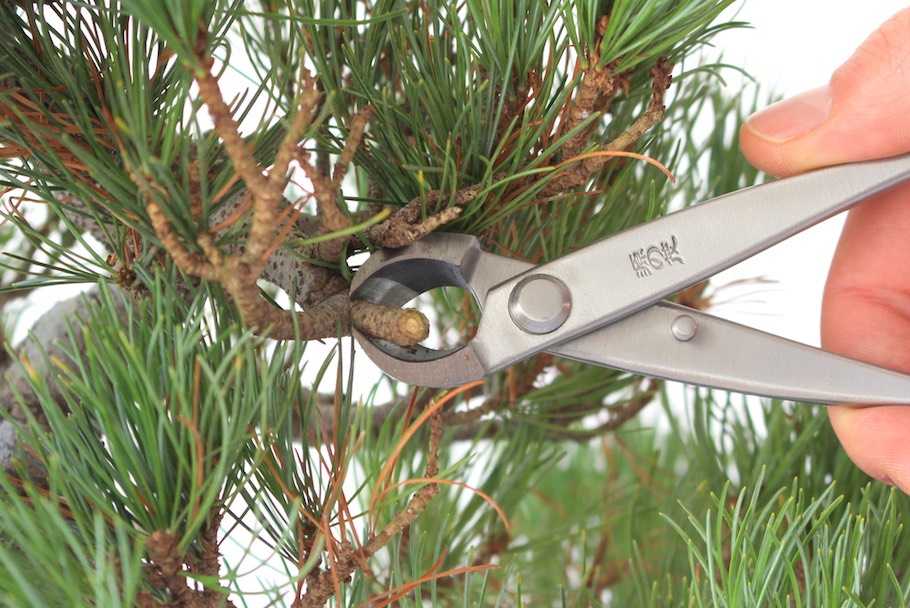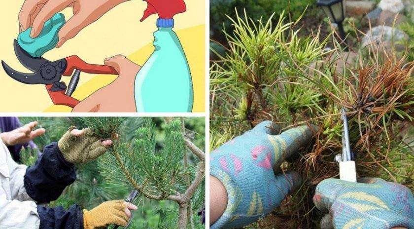 Выращивая сосну на приусадебном участке, многие садоводы предпочитают формировать её крону по своему вкусу. К обрезке не следует приступать ранее, чем сосне исполнится 2 года. Лучшее время для этого — ранняя весна или осень, когда движение соков в растении замедлено.
