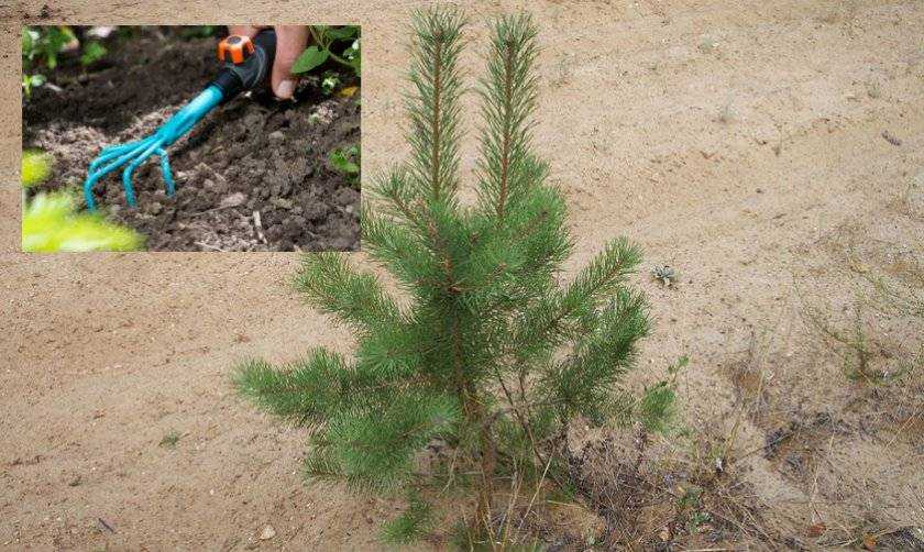 Высаженные в открытый грунт маленькие сосны требуют регулярного рыхления почвы и прополки. Это обеспечивает доступ воздуха к корневой системе и не даёт застаиваться лишней воде, ведь лишняя влага провоцирует развитие грибковых заболеваний, а без прополки рядом с хвойными прекрасно чувствуют себя сорняки.
