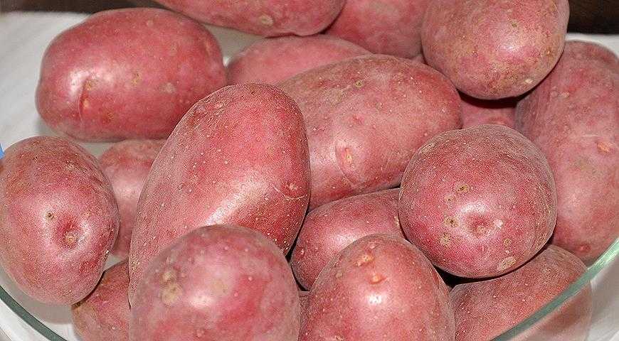 - картофелины овальные, весят 78-122 г, красного цвета с мелкими глазками;