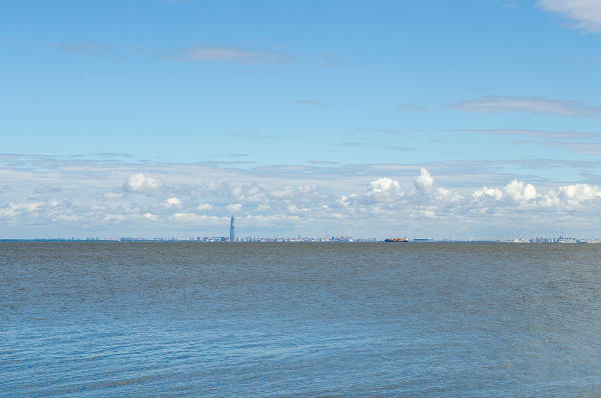 Формально дворец Монплезир и весь комплекс Петергофа территориально входит в состав северной столицы. Получается необычная картина – обзор заморской части собственного местоположения. Знатоки местной географии, а именно Приморского района Санкт-Петербурге, наверняка различат некоторые постройки. Почти 15 километров разделяют дворец Монплезир с противоположным берегом, но кое-что различимо.