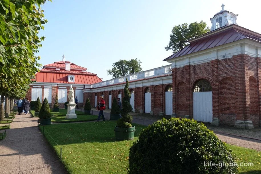 Самая ранняя постройка, относящаяся к петровскому времени, — это Гостевые покои или «Покои для Фамилии», примыкающие к зданию «Монплезира» и в которых размещали родственников и приближенных императора.