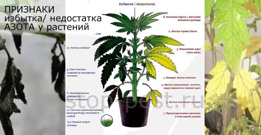 | признаки НЕДОСТАТКА азота: | признаки ИЗБЫТКА азота: |