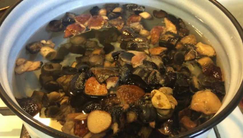 Теперь можно приступать к варке. Хорошенько промываем плоды, меняем воду и ставим на огонь. Варка таких грибов займет довольно длительное время – не менее двух часов.