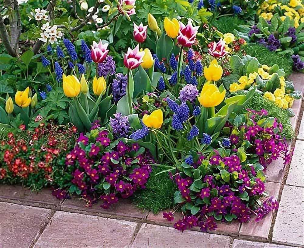 Если посадить луковицы в центр компактной клумбы, а вокруг них – морозостойкие крокусы, то будет создано нежное кружево по краю романтичной композиции. Стройные гиацинты с чарующим ароматом высаживают вперемешку с тюльпанами с учетом тонов. Весной тюльпаны и радужные ирисы, цветущие в апреле-мае будут создавать праздничную атмосферу в течение 2-х месяцев.