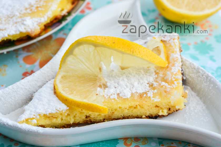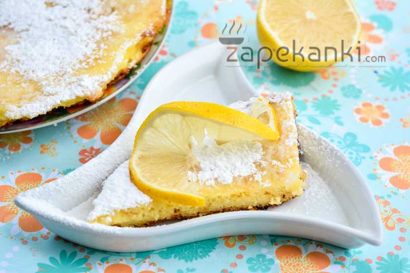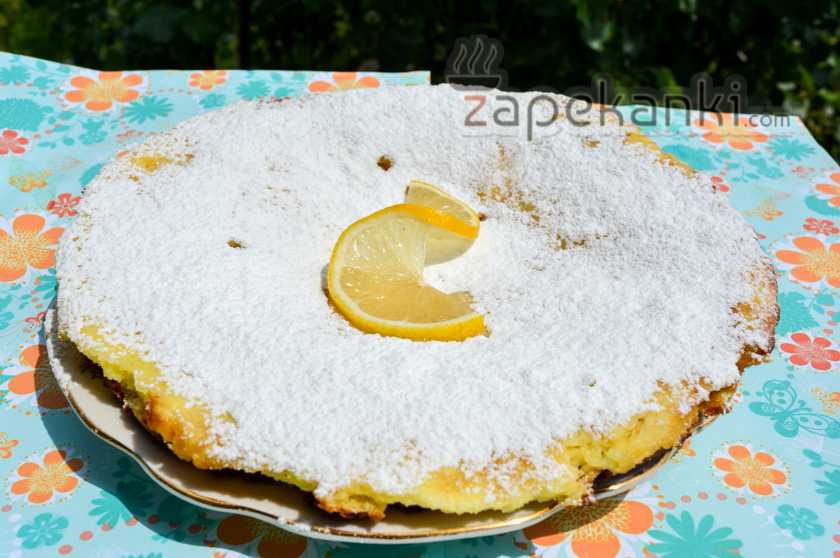 10. Для украшения притрусим сладкий десерт обычной сахарной пудрой. Также можно использовать ломтик лимона, в котором сделаем надрез и немного вывернем края.