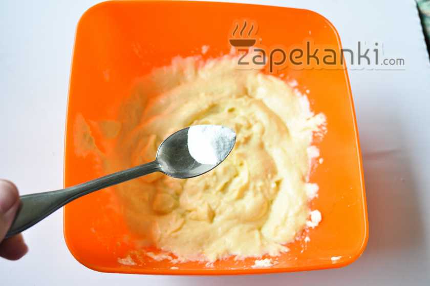 6. Добавляем в нашу творожную массу соду. Она нужно для того, чтобы запеканка немного поднялась.