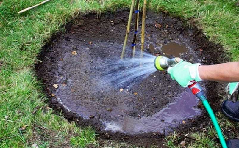 - Чтобы земля вокруг стволов была постоянно увлажненной, полив проводят 4-5 раз в течение сезона.