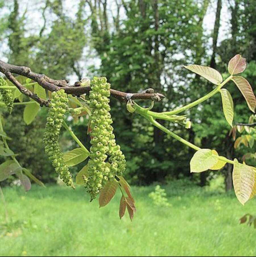 Цветет грецкий орех дружно. На одном дереве растут и мужские, и женские цветки, называемые сережками. Мужские цветки расположены по бокам, а женские растут на верхушках побегов. Отличить мужские цвет от женских у грецкого ореха очень просто: они разные по длине. Сережки мужских цветков порой достигают 8-10 см, а женские коротенькие – всего 1-2 см, расположены гроздьями по 2-6 штук.