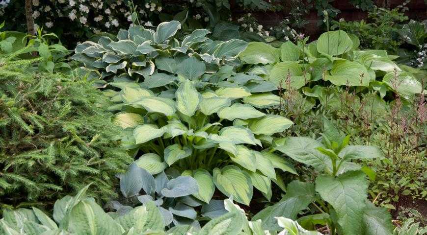 Декоративные хосты при должном уходе смогут оживить любой тенистый уголок сада или дачного участка, придать клумбе эффектный вид. Растеия разного окраса отлично смотрятся рядом с вереском, можжевельником, хвойниками, астильбой, жасмином. Можно посадить кусты рядом с гортензиями, розами, цветущими однолетниками и многолетниками.