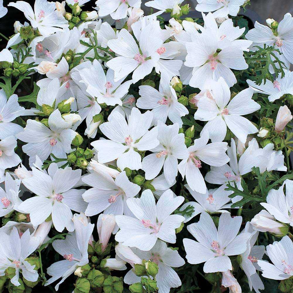 Мальва мускусная (Malva moschata) – растение родом из Западной Европы и Малой Азии, достигающее в высоту 1 м. У него шероховатые волосистые стебли и обладающие мускусным ароматом розовые или белые цветки диаметром до 5 см. В культуре растение с 1596 года. Цветение происходит с июня по август. Вид обладает высокой зимостойкостью: выдерживает морозы до -35 ºC. Самый известный сорт – Белое Совершенство – растение высотой от 35 до 70 см с многочисленными белоснежными цветками диаметром до 5 см;