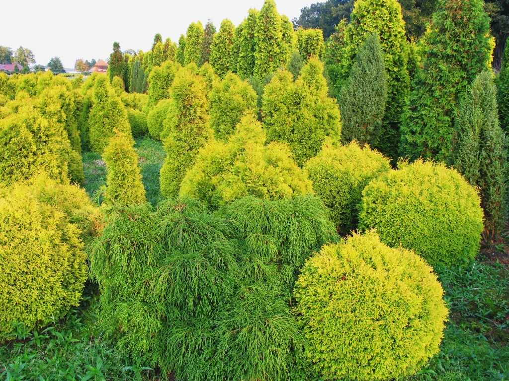 - Наряду с колоновидной формой встречаем шаровидные и золотистые сорта. Этот вид применяется не только для посадок на улицах, но и с успехом выращивается в оранжереях.