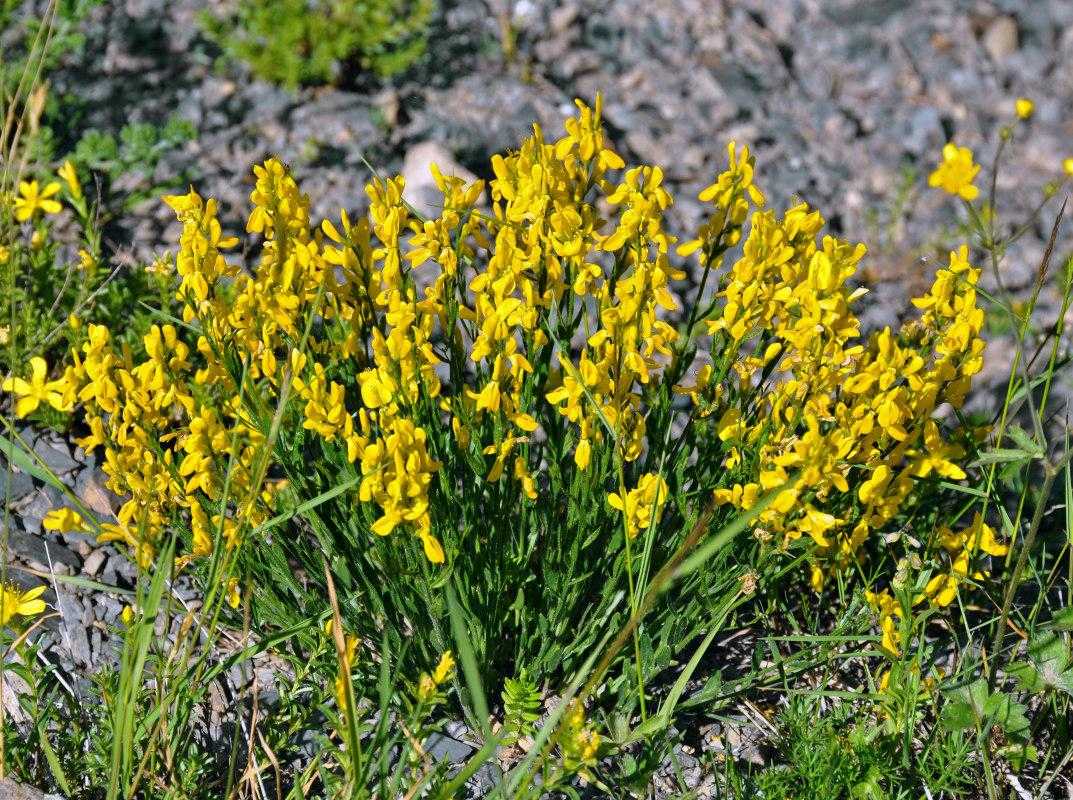 Дрок кровожадный или красильный (Genista tincioria). Не колючий быстрорастущий кустарник, произрастающий в регионе от центральной Европы до Сибири. Высота растения от 30 до 100 см, ширина куста около метра.