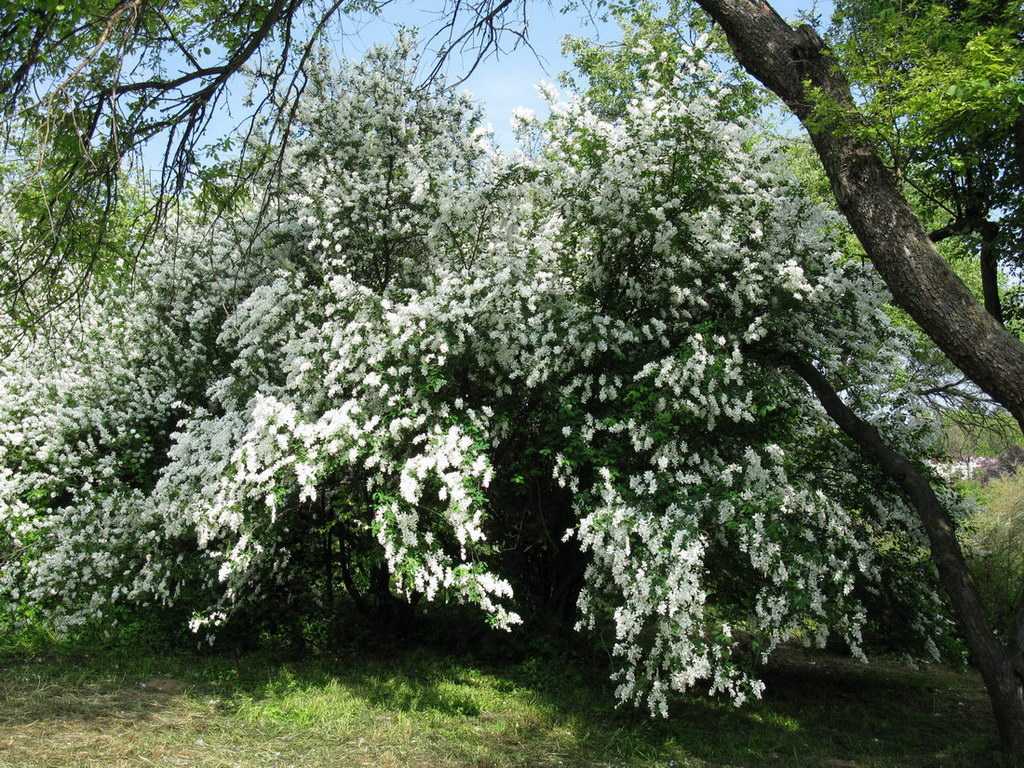 Также май примечателен белоснежной «пеной» весеннецветущих видов спиреи.