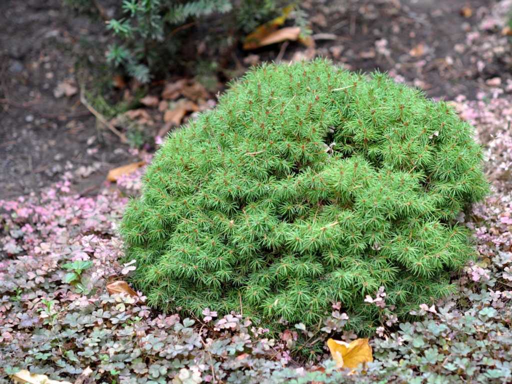 Небольшие карликовые (до 1 м) хвойники с шаровидной кроной превосходно украшают альпинарии.