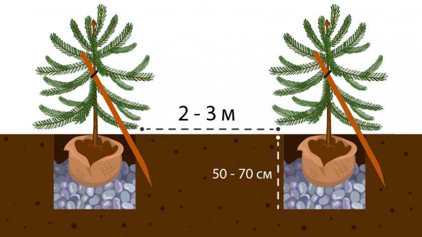 - Поместить корень ели в яму и засыпать её грунтом.
