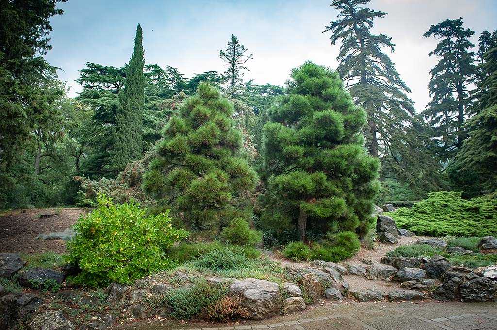 Живописный сад с камнями станет привлекательнее, если на него высадить хвойные растения. Формируют подобные цветники на ровной местности либо умеренных склонах. При этом нужно придерживаться плавных форм, избегая излишней симметричности деталей. На фоне часто высаживают почвопокровные сорта растений, включая хвойные подвиды.