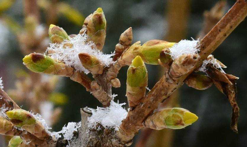 Часто при ярком солнечном свете в начале марта многие декоративные культуры выходят из спячки раньше положенного срока. В прогретых стволах и ветвях начинается активного движение древесного сока. Ранняя вегетация в 78% случаев становится причиной обморожения бутонов и почек. В качестве защитного материала могут быть использованы гашеная известь, садовый вар плюс эластичный бинт.