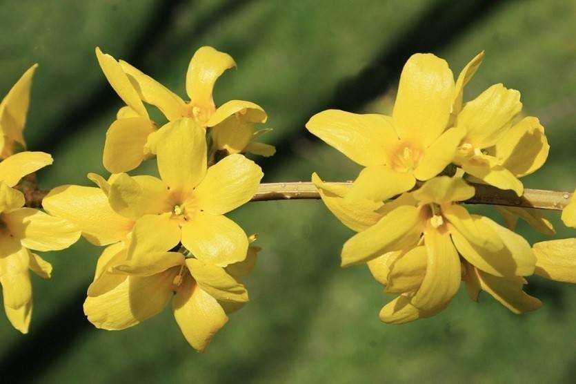 Побеги форзиции буквально усеяны цветами, они держатся на растении минимум 3 недели