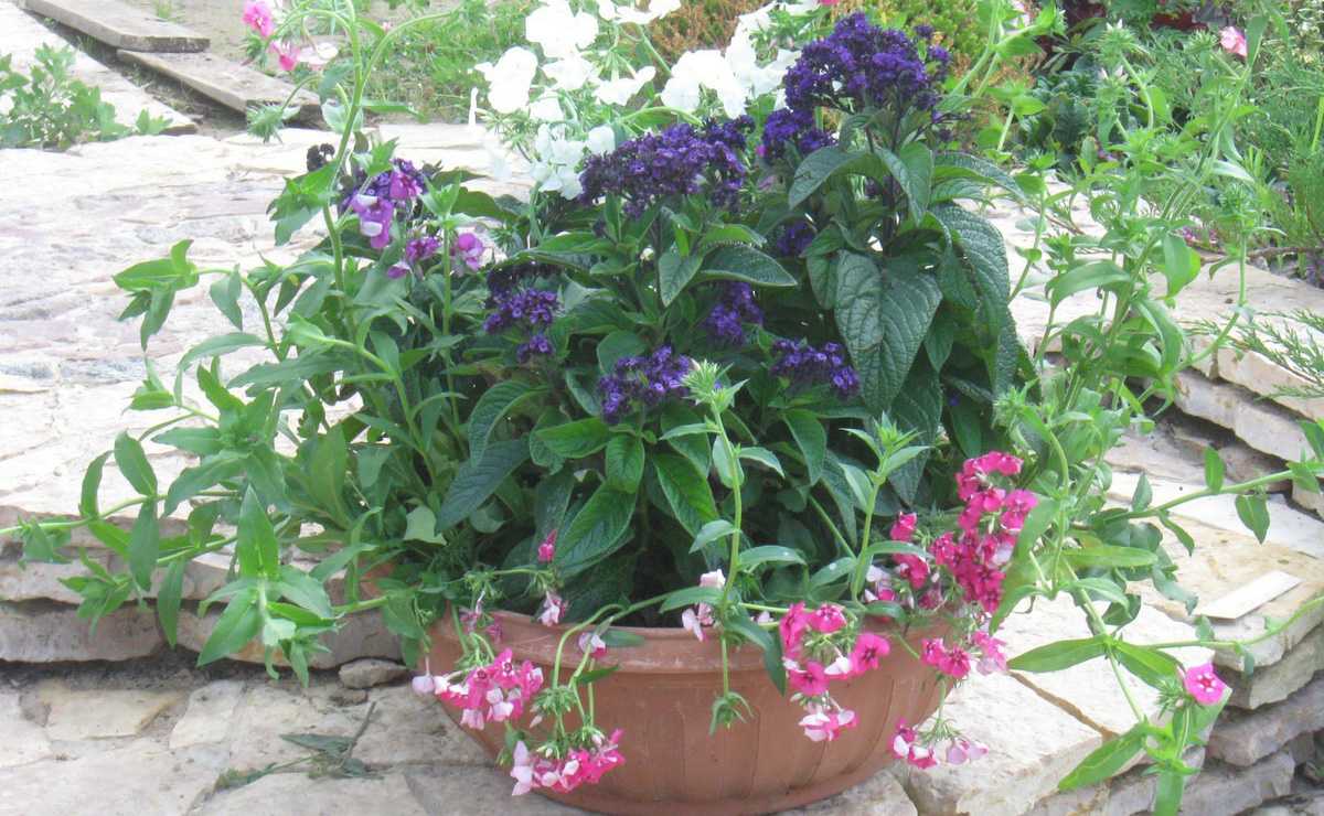 Выращивание гелиотропа из собственноручно собранных семян может стать проблемой: они и всходят неважно, и зацветают выращенные из них гелиотропы только к концу лета, да и кустики получаются разными по высоте, а соцветия слишком мелкими. На фото: Цветение гелиотропа