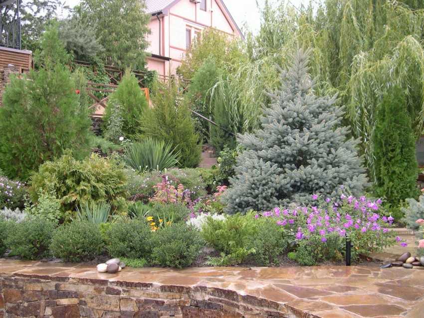 Голубые ели на участке в ландшафтном дизайне не только смотрятся эстетично, но и обладают слемаду