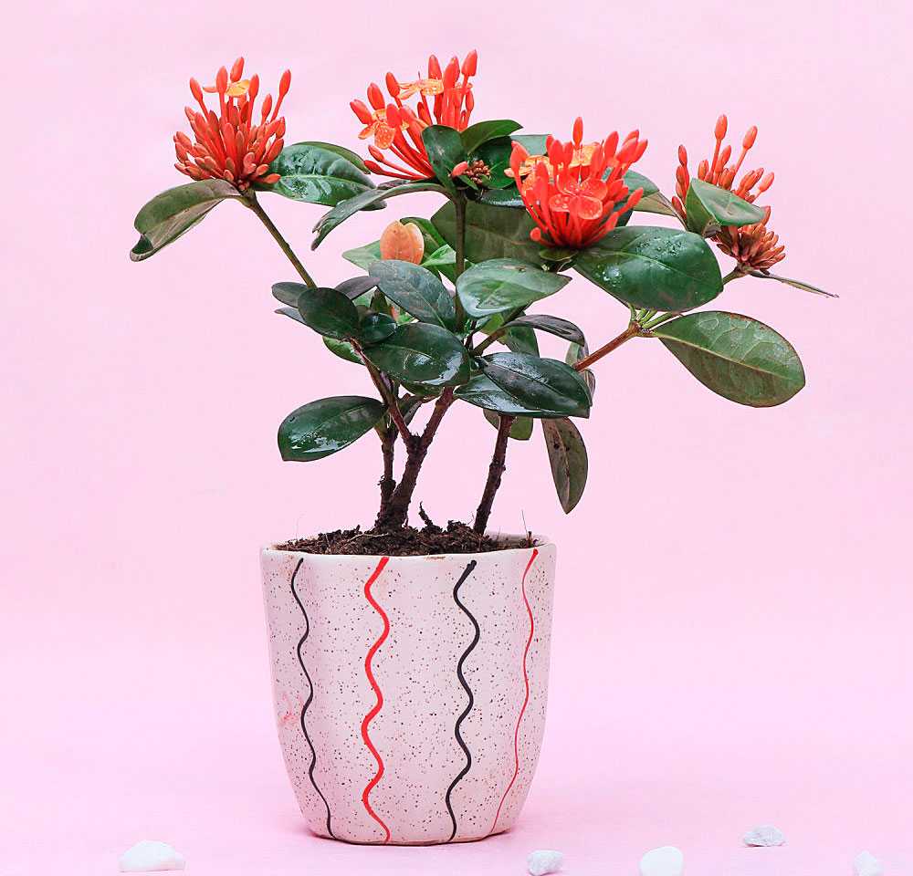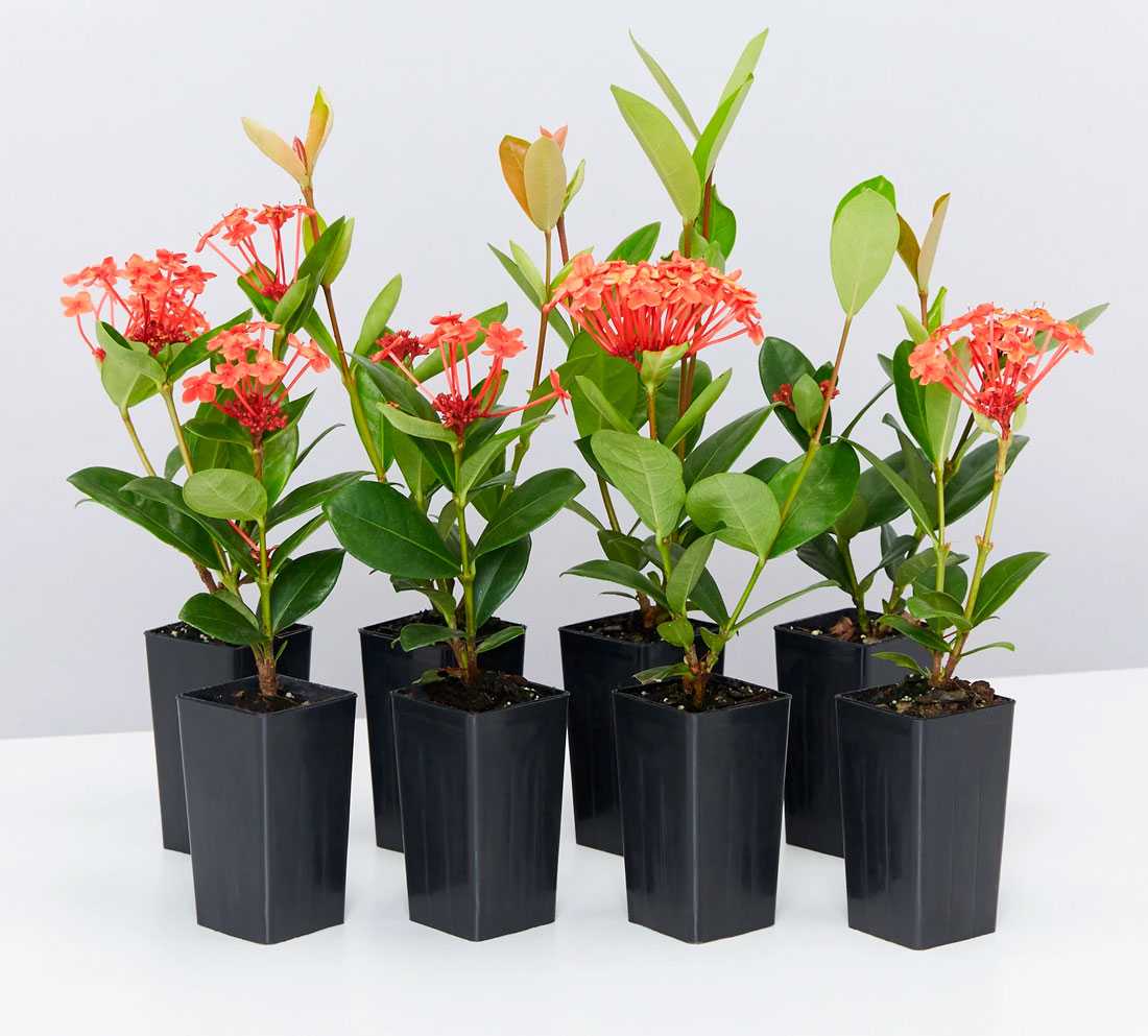 Иксору ярко-красную нельзя сажать в слишком большие емкости. Корневая система этого растения небольшая, поэтому благодаря маленькому горшку, который ограничивает рост корней, растение будет цвести намного обильнее.