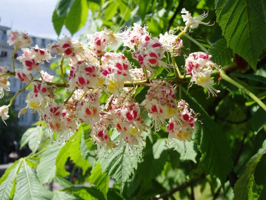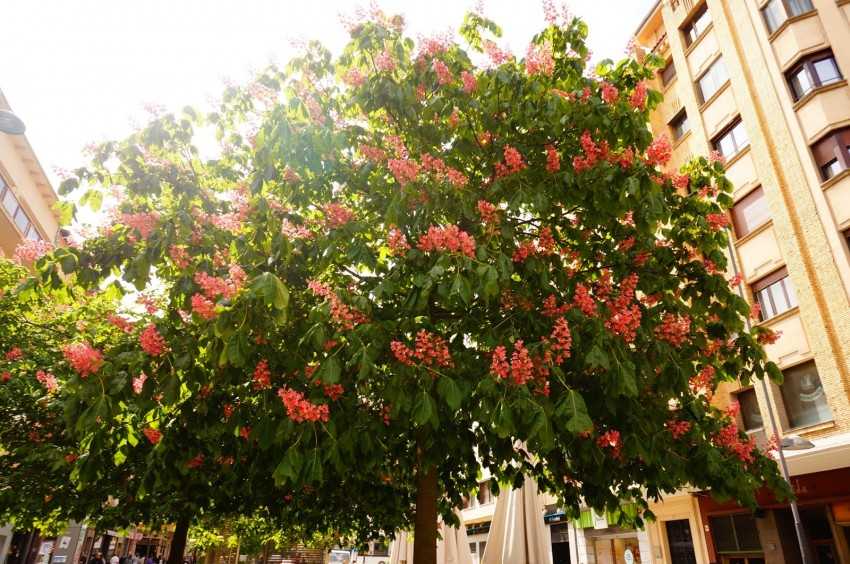 Каждую весну, на протяжении двух недель, каштан будет радовать вас своим цветом. Конусообразные соцветия стали настоящим символом многих городов, и даже мороженное получило название в честь этого величественного дерева.