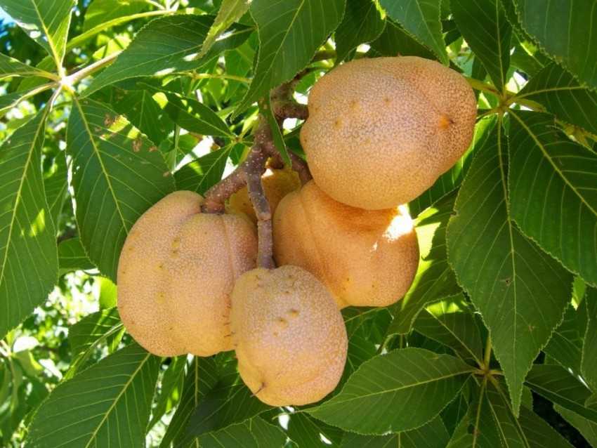 - Индийский. Родина – Северная Индия. Листопадное дерево вырастает ввысь на 20 метров. Образуются большие соцветия белых цветов, усыпанных желтыми и красными пятнами. Плоды получаются колючие и довольно мясистые.