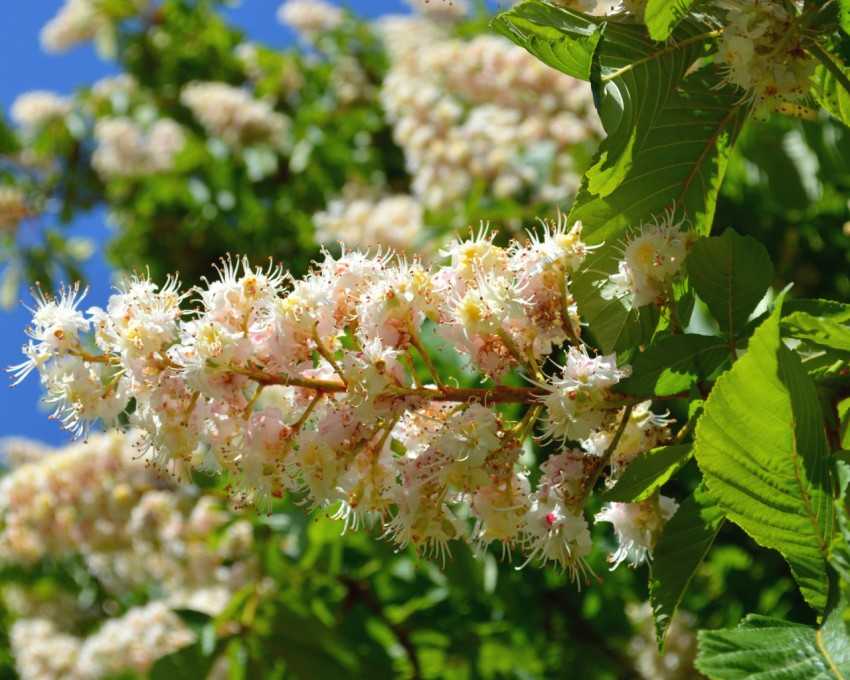 - Калифорнийский. Представляет собой невысокое сравнительно дерево, достигающее высоты не более 10 метров. Двадцатисантиметровые соцветия из белоснежно-розовых цветков источают очень нежный приятный запах.