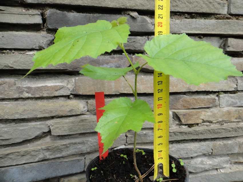 После появления всходов почву в ёмкостях желательно поддерживать постоянно влажной, но при этом не допускать заболачивания. Как только сеянец подрастёт до высоты 15 см, поливы можно сократить до 1 раза в 2 дня.