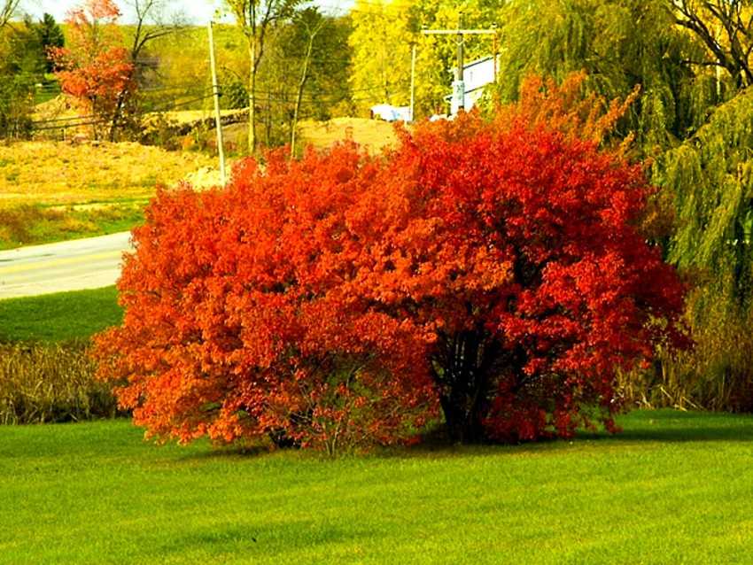- Малиновый Часовой — небольшое деревце до 10 м высотой. Яркий красно-коричневый цвет сохраняется в течение всего сезона.