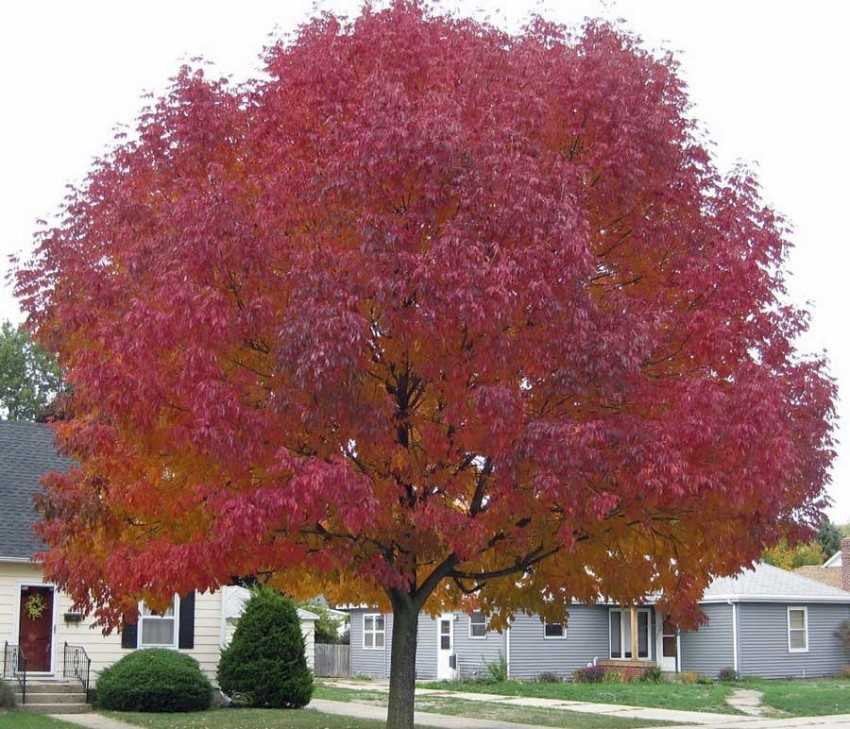 Клен Fairview - Princeton Gold — большое дерево, молодые листья окрашены в ярко-желтый цвет, впоследствии становятся зеленоватыми с теплым оттенком.