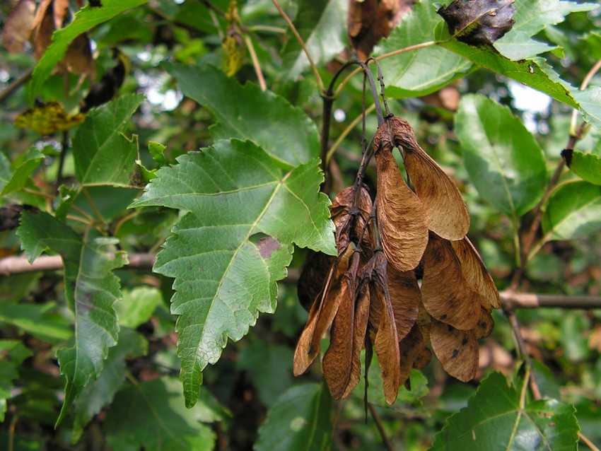 Латинское название породы «Acer ginnala Maxim». Культура впервые появилась в 1860 году. Представляет собой достаточно крупный кустарник, иногда вырастает до размеров небольшого дерева. Родиной клена считается Китай, Корея, Дальний Восток и юго-восточная часть Монголии. Отличается шатровидной кроной, достаточно широкой и густой, если ствол только один, то ее форма может быть конической. Деревья данной породы в год вырастают на 30-60 см. Процесс цветения начинается после распускания листьев. У такого клена соцветие-метелка многоцветковая, желтоватого оттенка и с легким душистым ароматом. Летом на деревьях появляются плоды – крылатки. Они имеют вытянутую форму, чем-то напоминающую крылья. Их размер достигает до 3 см, а цвет может меняться в зависимости от попадания солнца: от зеленого до ярко-красного. Лист фигурной формы, напоминает соединенные три лопасти, из которых средняя вытянута чуть больше остальных.