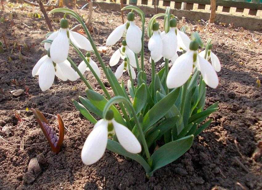 Посадка цветов и уход в открытом грунте за галантусами совершенно не сложные, и особых хлопот садоводам не доставят. Поливать клумбу необходимо только в том случае, если зима была малоснежной, а весна не балует дождиком. В остальное время подснежникам достаточно той влаги, которая образуется на грядке после таяния снежных сугробов.