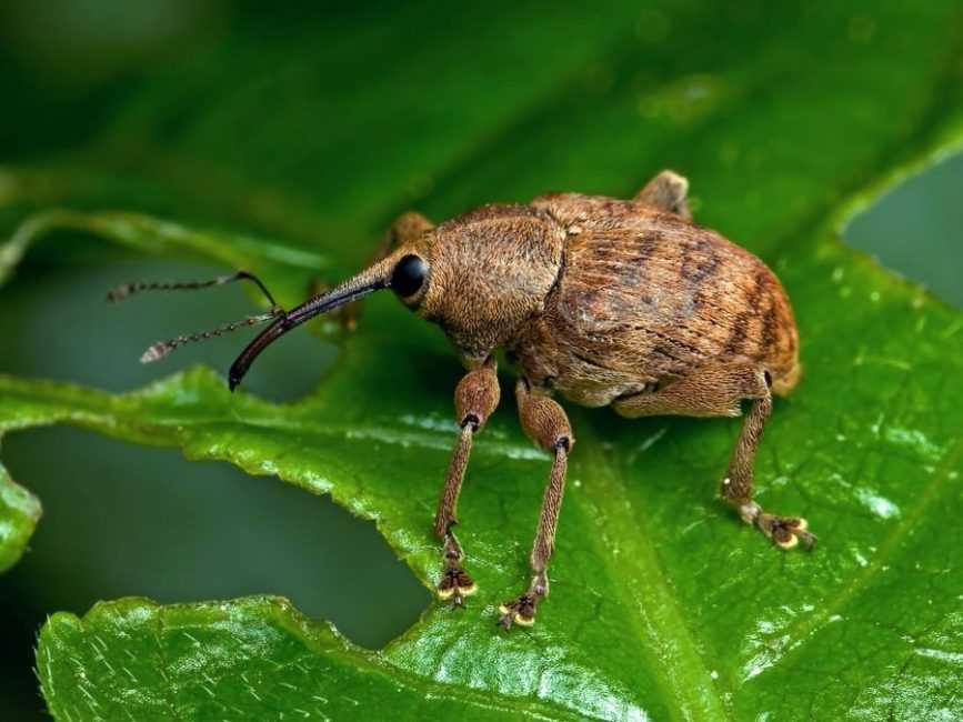 - долгоносик – паразитирует на малине и клубнике, из отложенных яиц появляются личинки, которые подгрызают бутоны и съедают цветоножки растений, живут прямо в цветах;