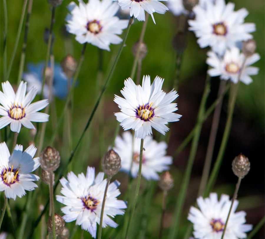 Это растение нередко считают самой красивой разновидностью из всех сортов катананхе с белыми цветками. Куст украшают белоснежные махровые цветочки, которые также могут быть бледно-голубыми. Разновидность отличается пышным цветением, которое длится с июня по август. В высоту кустик достигает около 0,7 метров.