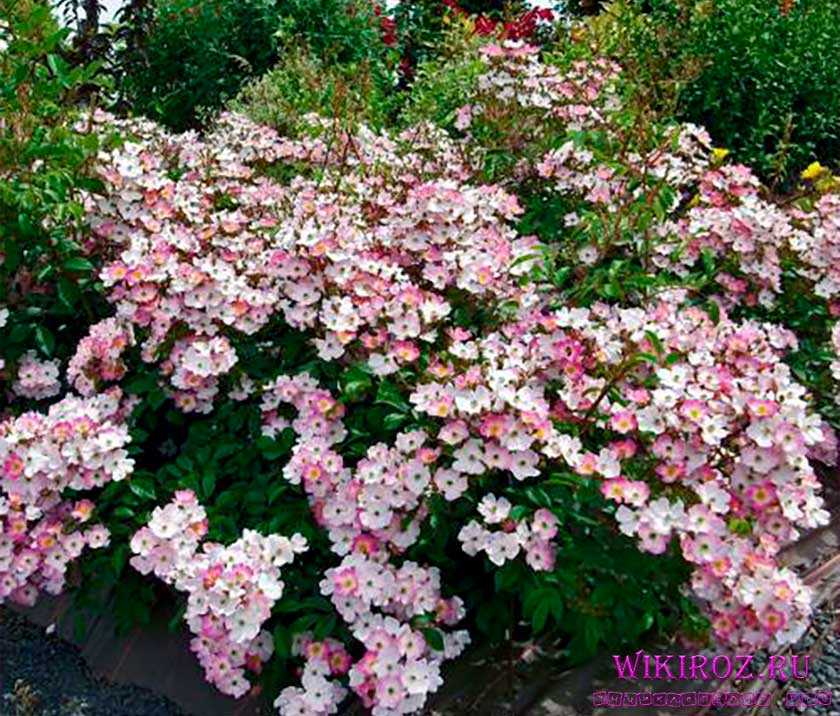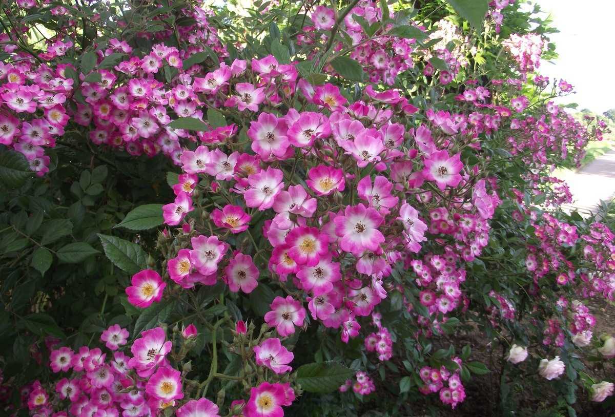 Есть невысокие сорта мускусных роз, которые можно высаживать на переднем плане — это «Балерина», имеющая форму шара.