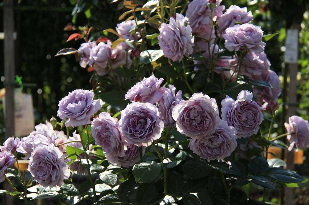 Особенностью плетистых роз является очень высокое соцветие. В длину стебель может достигать 5 метров. Их часто используют для декорирования заборов, колонн или беседок. Плетистые фиолетовые розы получились в результате скрещивания чайно-гибридной, дикой и японской розы.
