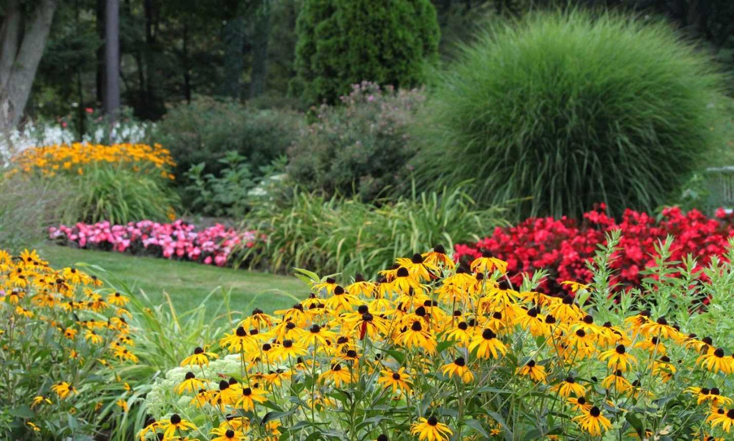 На любом цветнике распустившиеся цветочки рудбекии будут смотреться ярко и жизнерадостно
