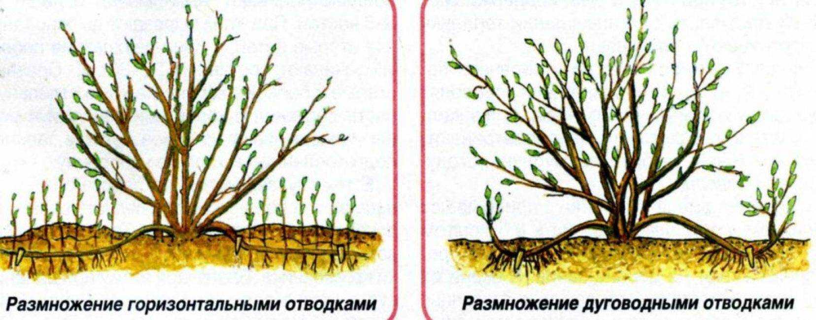 Для размножения отводками используют самую сильную молодую поросль. Внизу под первой почкой необходимо ветвь перетянуть проволокой, а побег наклонить к земле в бороздку и присыпать песком и торфом.