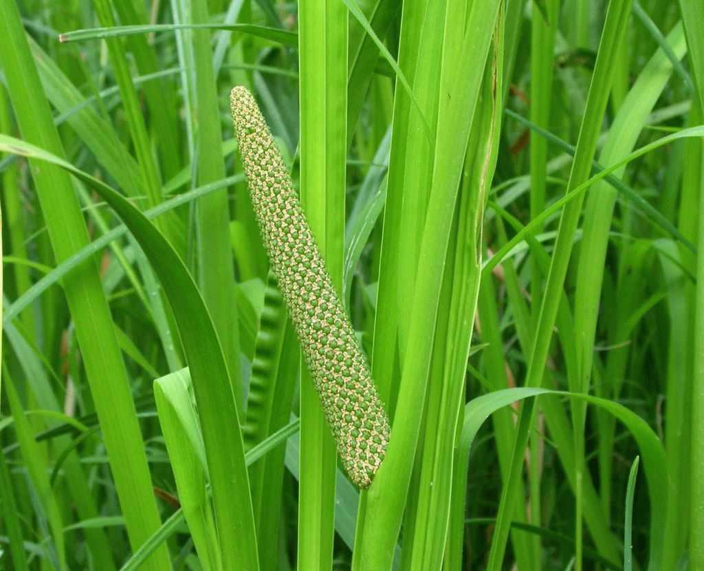 Все виды аира обыкновенного или болотного не достигают больших размеров, хотя для травы 60-120 см – это довольно внушительные размеры. Соцветия также крупные и составляют около 8 см.