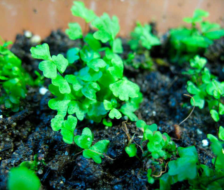 Первые сеянцы должны показаться приблизительно спустя 6 недель после посева. После того как в длину сеянцы будут достигать 20-25 мм, их следует обязательно проредить, при этом должны остаться наиболее мощные ростки. После того как всходы подрастут, их надо распикировать по индивидуальным горшочкам. Данный метод размножения папоротника довольно долгий, при этом за молоденькими растеньицами нужно постоянно следить. В связи с этим он не пользуется большой популярностью у цветоводов.