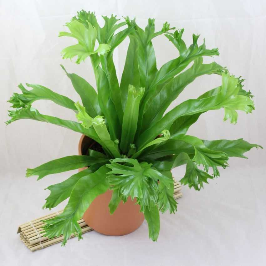 Иногда называют сколопендровым листовиком, оленьим рогом, оленьим языком. Он похож на гнездовидный папоротник, листья – ремни сильно вырастают вверх, а затем начинают изгибаться дугой. Краешки вай волнистые, очень красивые, смотрятся необычно. Для прохладных помещений – идеальное растение.