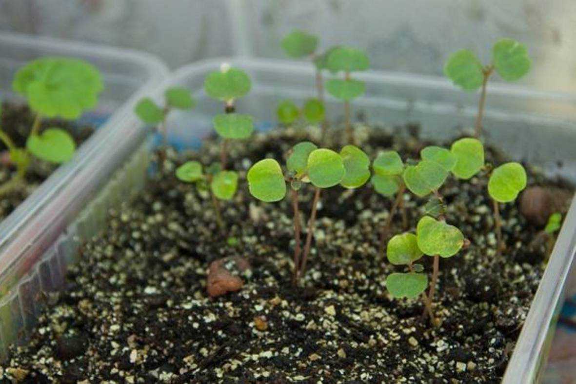 Как только семена прорастут (через 3-4 недели) накрытие снимают. Поместите рассаду в место с ярким рассеянным светом. Когда появятся первые 3-4 листочка, сеянцы пикируют и рассаживают в отдельные небольшие горшки. У подросших растений верхушку прищипывают.