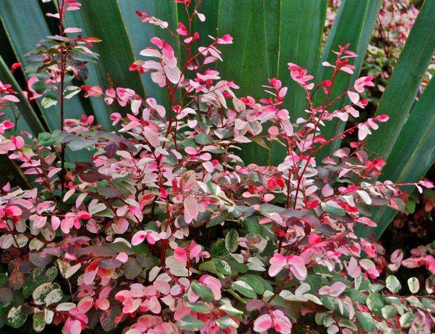 - Также известна брейния розоцветная. На верхней листве можно увидеть пятна розового оттенка.