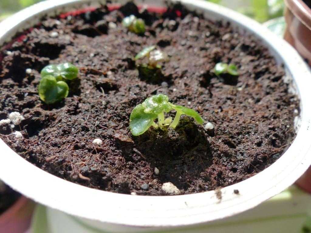 В конце февраля или в начале марта можно приступать к посеву семян бегонии. Сейте их по поверхности влажной почвы в контейнеры с крышкой или другие теплички. При благоприятных условиях первые ростки появятся быстро, через неделю, остальные появятся в течение двух-трех недель. Благоприятные условия — это когда температура до всходов около 18 гр., яркое рассеянное освещение, влажность от 50% до 70% и хорошая циркуляция воздуха. Для этого, найдите в квартире подходящее место. Увлажнение субстрата делайте с помощью мелкого пульверизатора теплой отстоянной водой, тепличку проветривайте и убирайте скопившийся конденсат. После всходов контейнер переставьте в более теплое место, где температура будет 20-23 гр., продолжайте поливать и проветривать посевы.