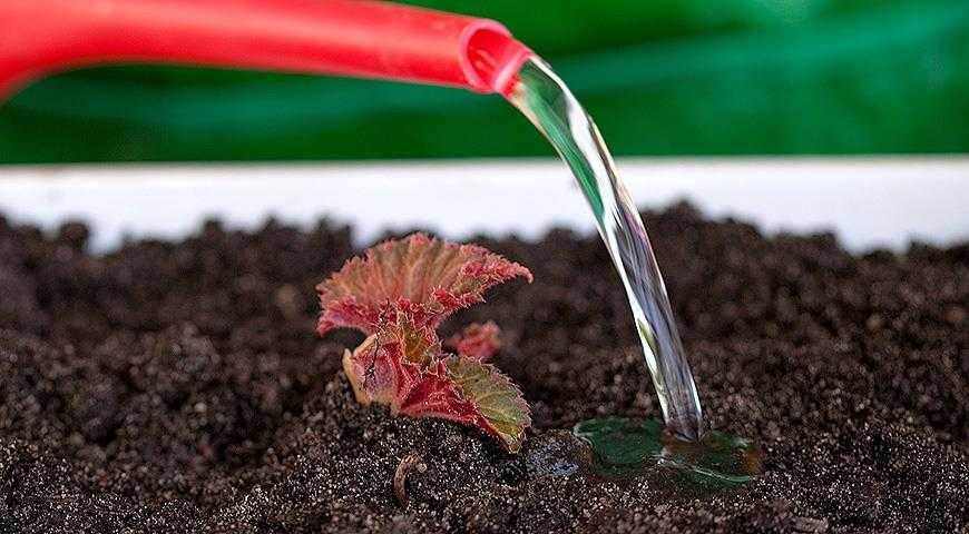 При набухании и прорастании почки клубни выкладывают в плошки с дренажными отверстиями. Корневище заглубляют на 1/3 в грунт. При появлении 2-3 настоящих листиков можно высаживать цветок в землю. Грунт постоянно должен быть чуть влажным. Для проращивания бегонии используют земляную смесь, состоящую из равных частей перлита, сфагнума, листовой земли.