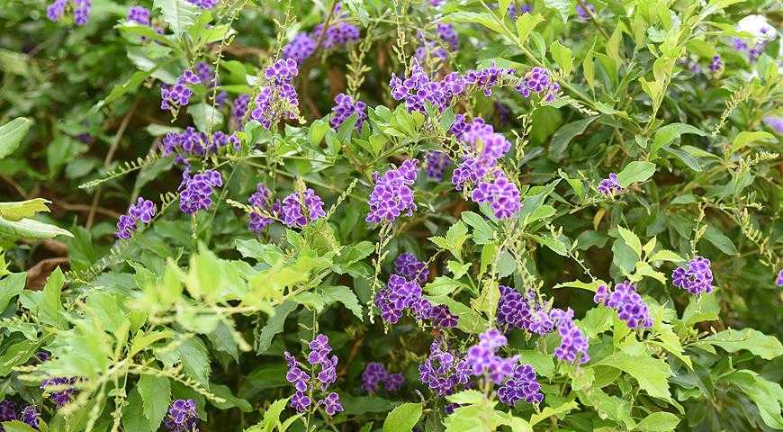 Ещё одно преимущество растения – приятный аромат, который часто сравнивают с ирисом или же ванилью. Цветы начинают распускаться с мая, а цветёт дуранта вплоть до осени.